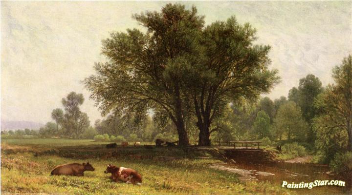 Landscape With Cows, Art Painting by Aaron Draper Shattuck
