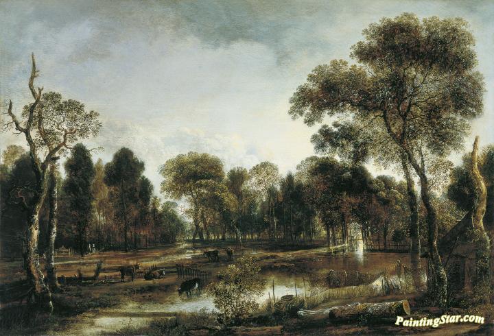 Wooded River Landscape, Art Painting by Aert van der Neer