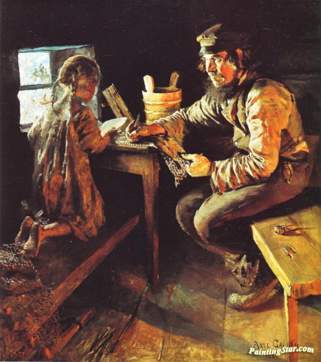 The First Lesson, Art Painting by Akseli Gallen-Kallela
