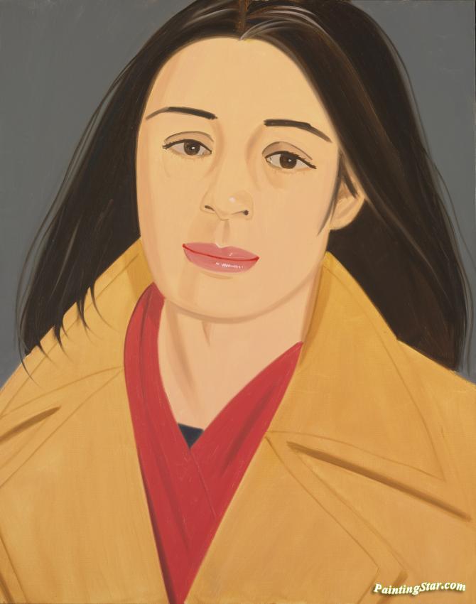 The Red Scarf (ada In Polo Coat), Art Painting by Alex Katz