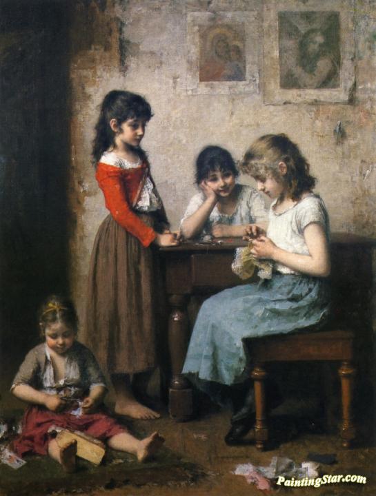 The Young Seamstress, Art Painting by Alexei Harlamoff