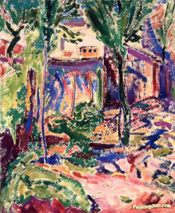 Landscape with Houses and Wall, Frost and Fog, Eragny, Art Painting by Alfred Henry Maurer