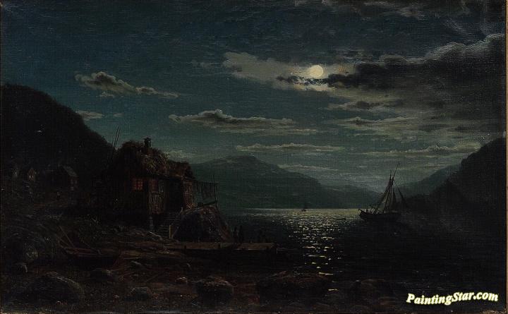 Coastal Landscape in Moonlight, Art Painting by Amaldus Clarin Nielsen