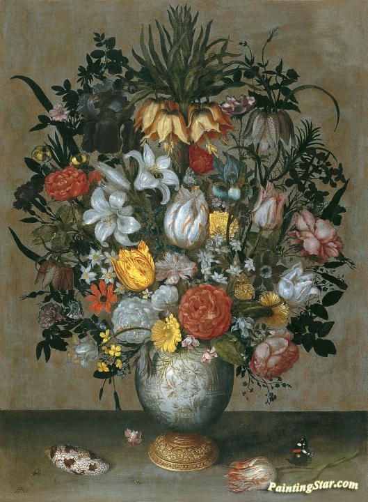 Chinese Vase with Flowers, Shells and Insects, Art Painting by Ambrosius Bosschaert