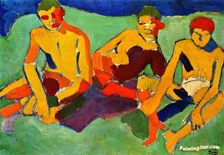 Three Figures Seated On The Grass, Art Painting by Andre Derain