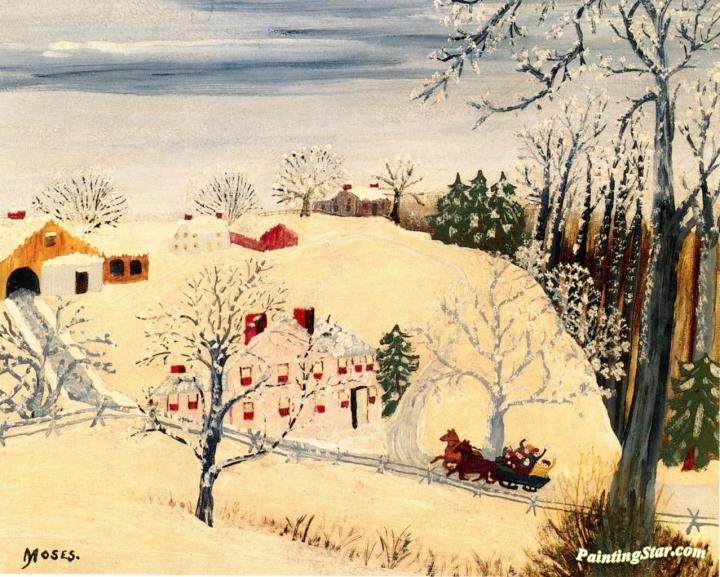 The Pink House, Art Painting by Anna Mary Robertson Grandma Moses