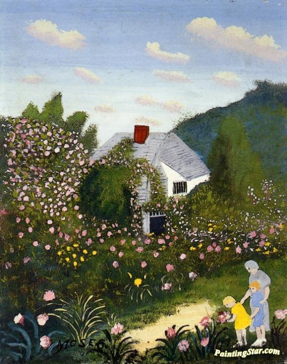 The Rose Garden, Art Painting by Anna Mary Robertson Grandma Moses