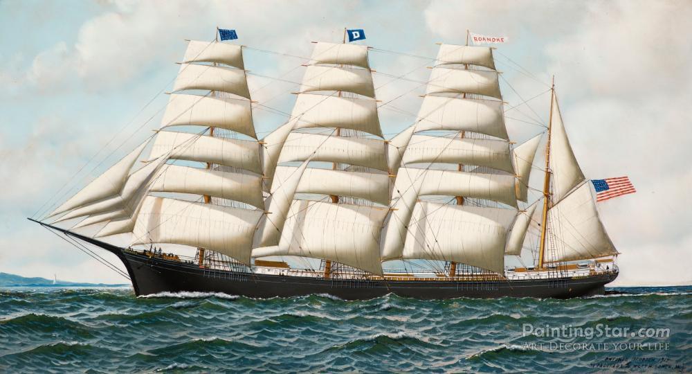 The Four Masted Barque Roanoke Under Full Sail, 1914, Art Painting by Antonio Jacobsen
