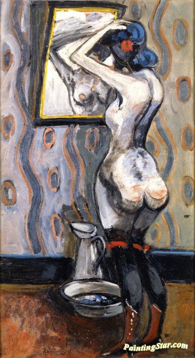Nude in Front of a Mirror, Art Painting by Auguste Chabaud