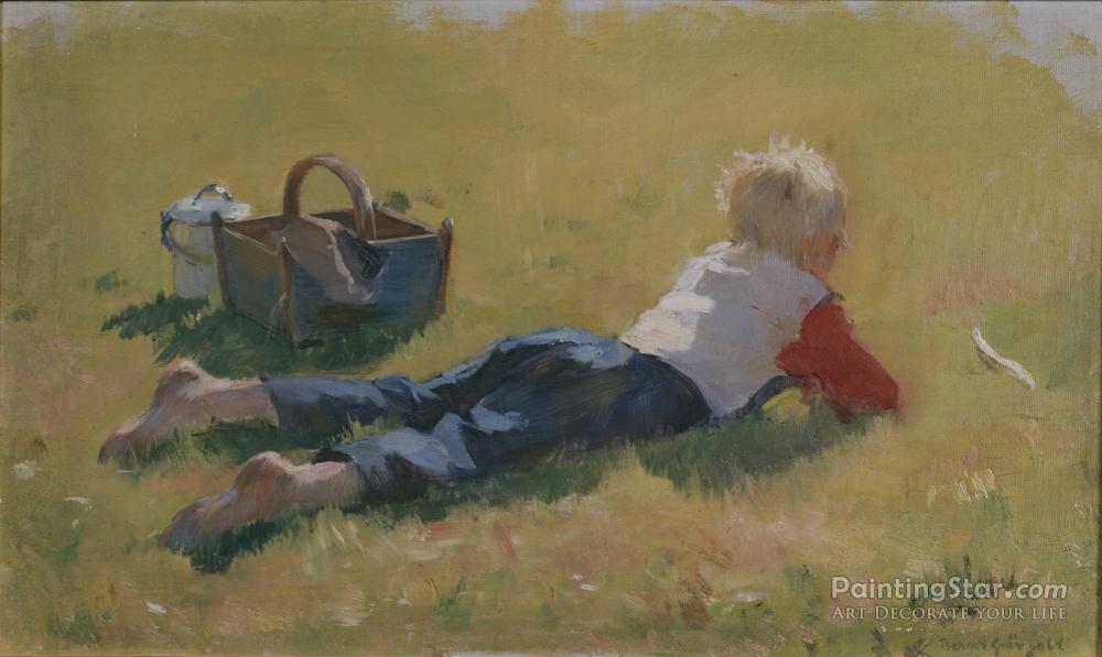 Little Child In The Grass, 1892, Art Painting by Bernt Gronvold