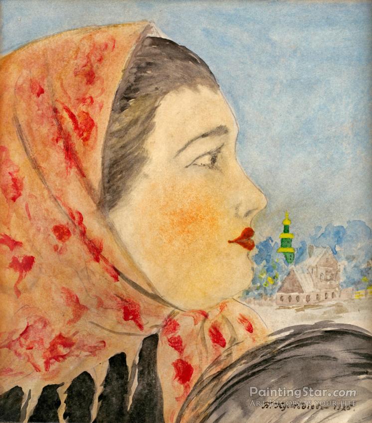 Head Of A Woman In Profile, Art Painting by Boris Mikhailovich Kustodiev