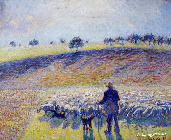 Shepherd and Sheep, Art Painting by Camille Pissarro