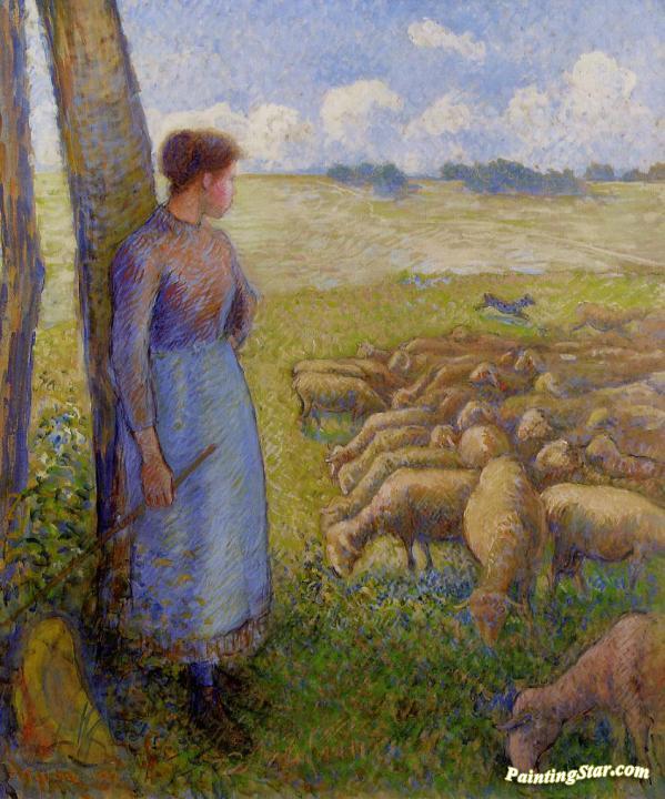 Shepherdess And Sheep, Art Painting by Camille Pissarro