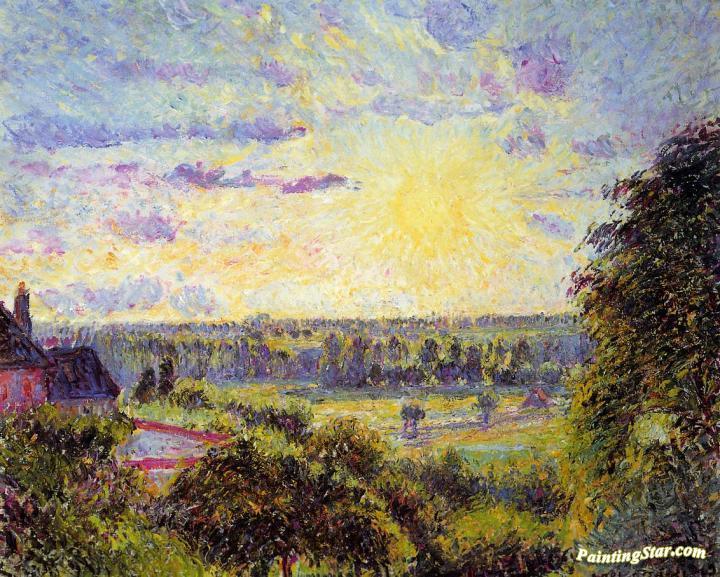 Sunset at Eragny, Art Painting by Camille Pissarro