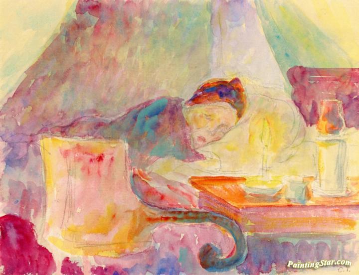 The Artist's Mother in Bed, Art Painting by Camille Pissarro