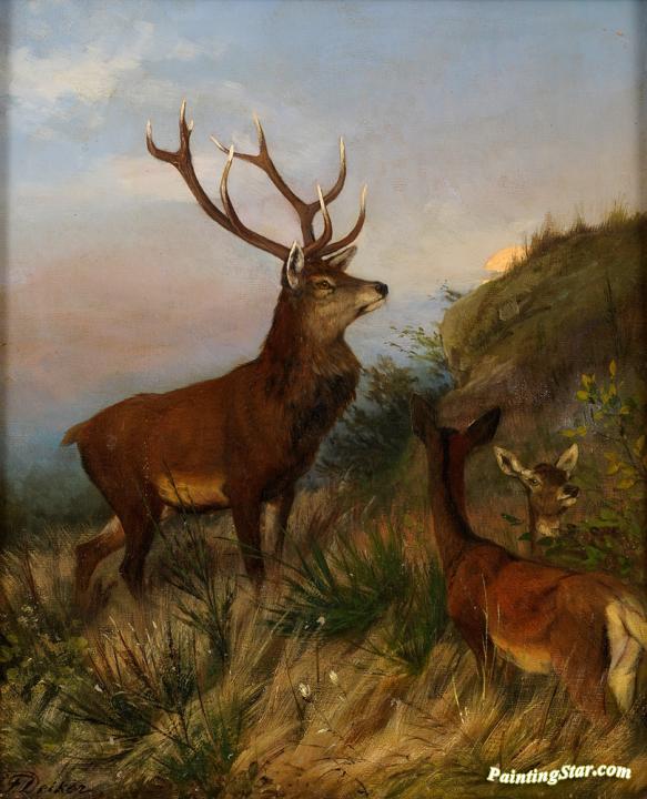 Deer Herd, Art Painting by Carl Friedrich Deiker