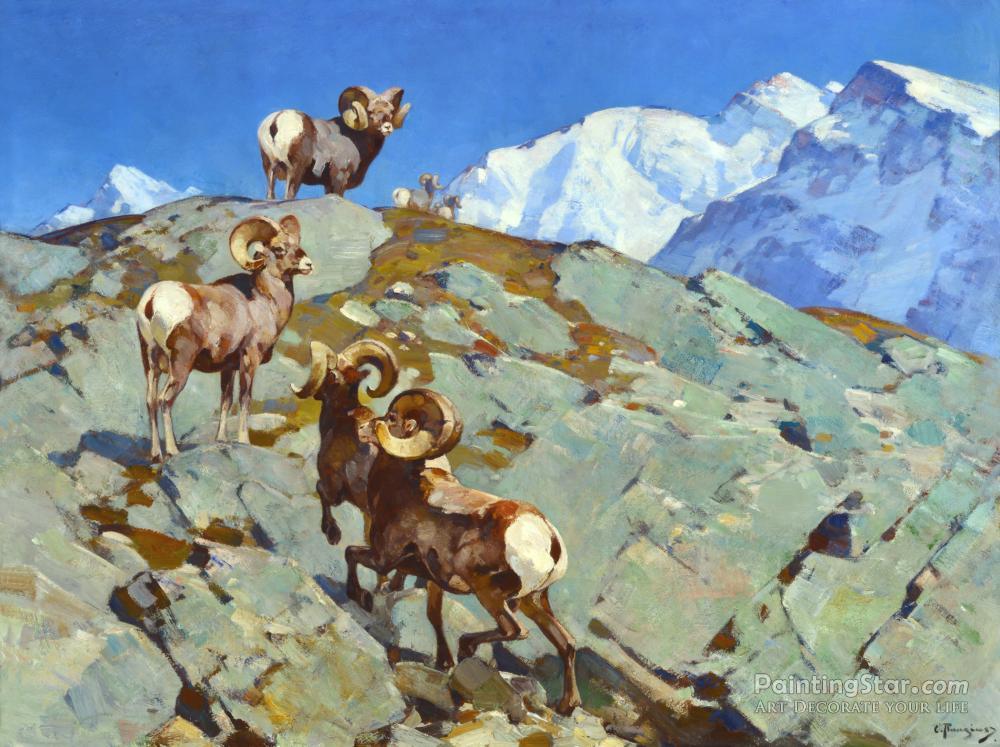 Alarmed (bighorn Rocky Mountain Sheep), Art Painting by Carl Rungius