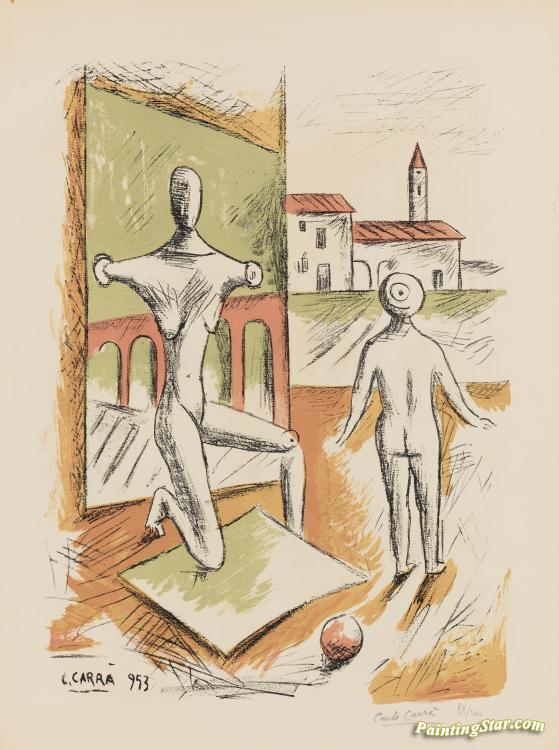 Manichino E Bambola, 1953, Art Painting by Carlo Carrà