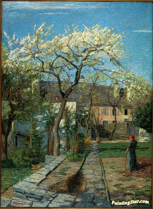 Cherry Tree In Blossom, Art Painting by Carlo Fornara