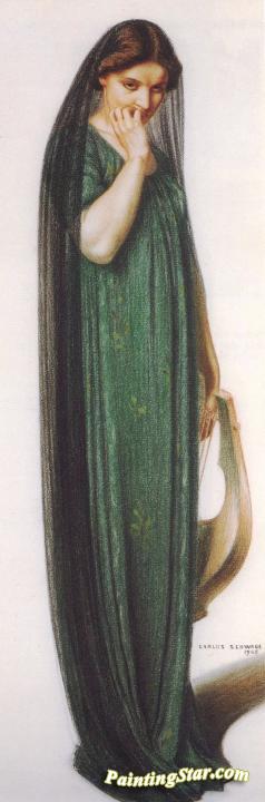 Woman with Lyre, Art Painting by Carlos Schwabe