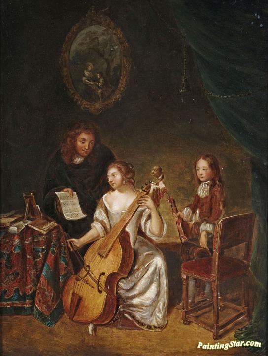 The Music Lesson, Art Painting by Caspar Netscher