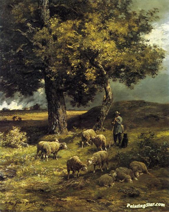 Tending the Flock, Art Painting by Charles-Émile Jacque