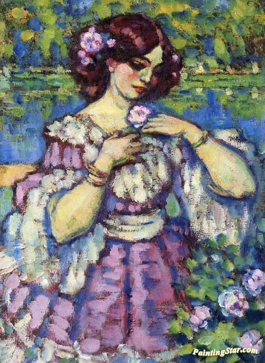 Lady with a Rose, Art Painting by Charles Guérin