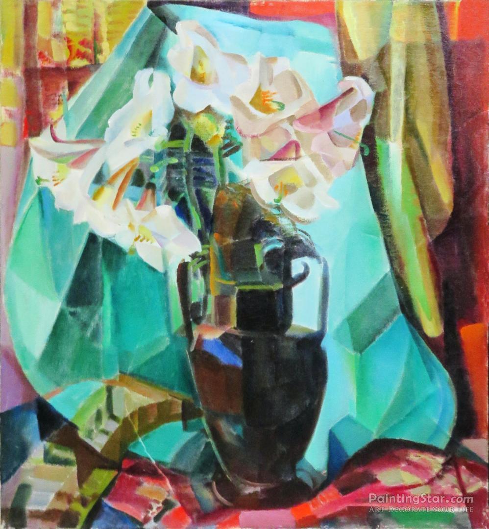 Still Life With Regal Lilies In Dark Vase, 1935, Art Painting by Clara Deike