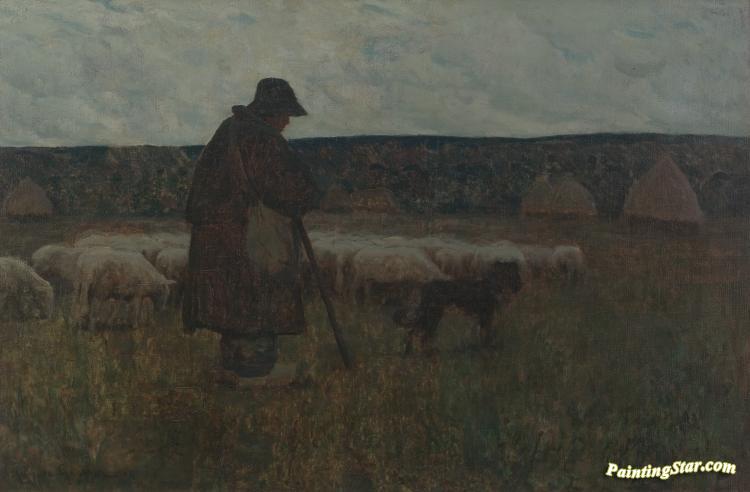 A Shepherd And His Flock, Art Painting by Clarence Gagnon