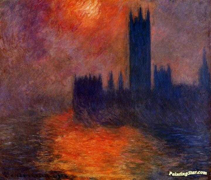 Houses of Parliament, Sunset, Art Painting by Claude Oscar Monet