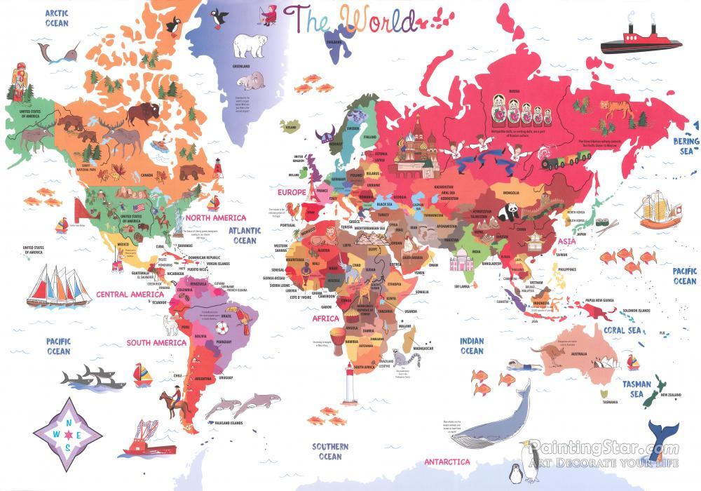 Illustrated Kids World Map, Art Painting by Collections