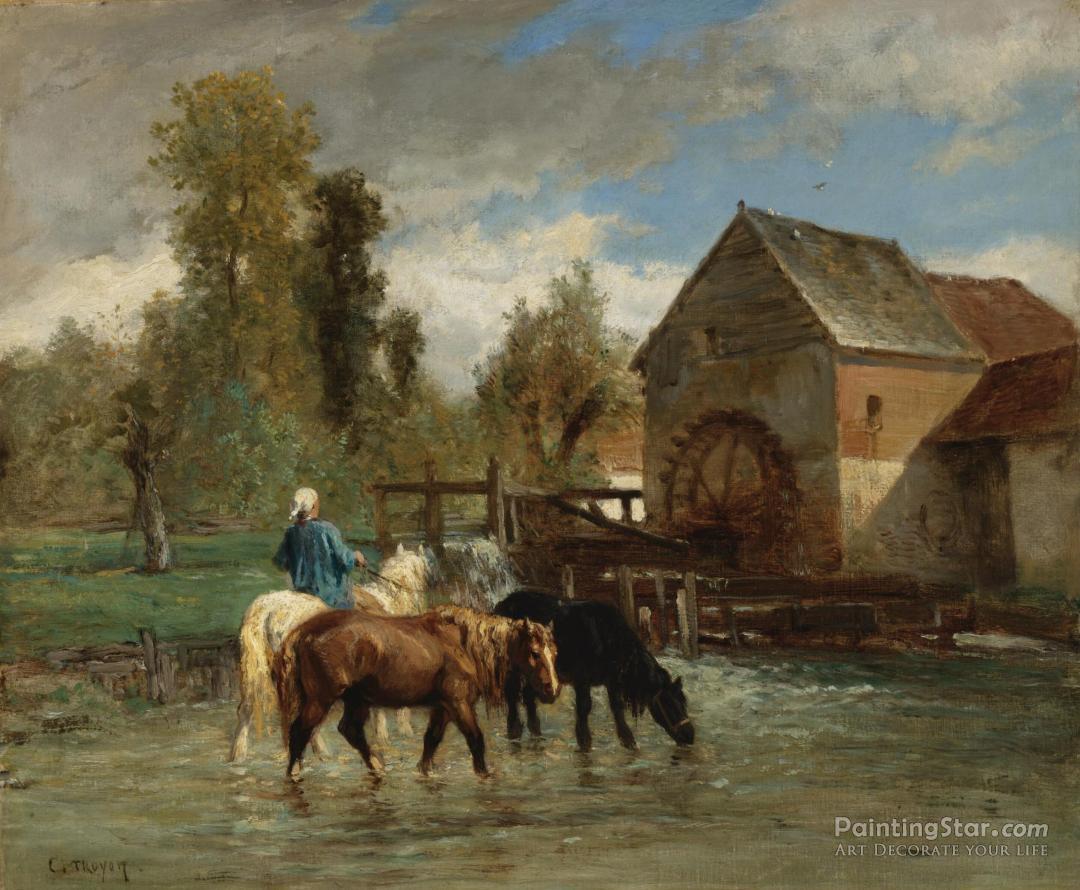 Watering The Horses, Art Painting by Constant Troyon