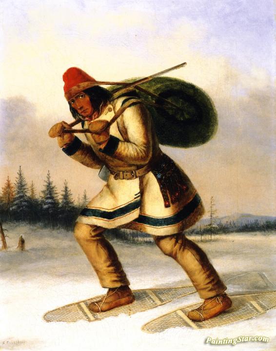 Indian Trapper On Snowshoes, Art Painting by Cornelius Krieghoff