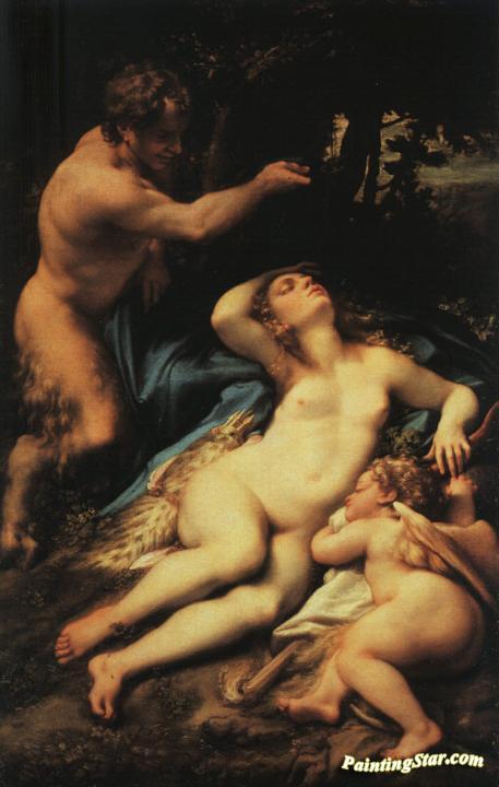 Venus and Cupid with a Satyr, Art Painting by Correggio