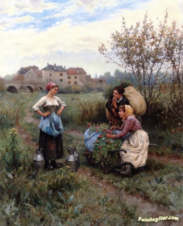 Two Women Fishing, Art Painting by Daniel Ridgway Knight