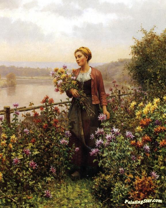 Woman in a Garden, Art Painting by Daniel Ridgway Knight