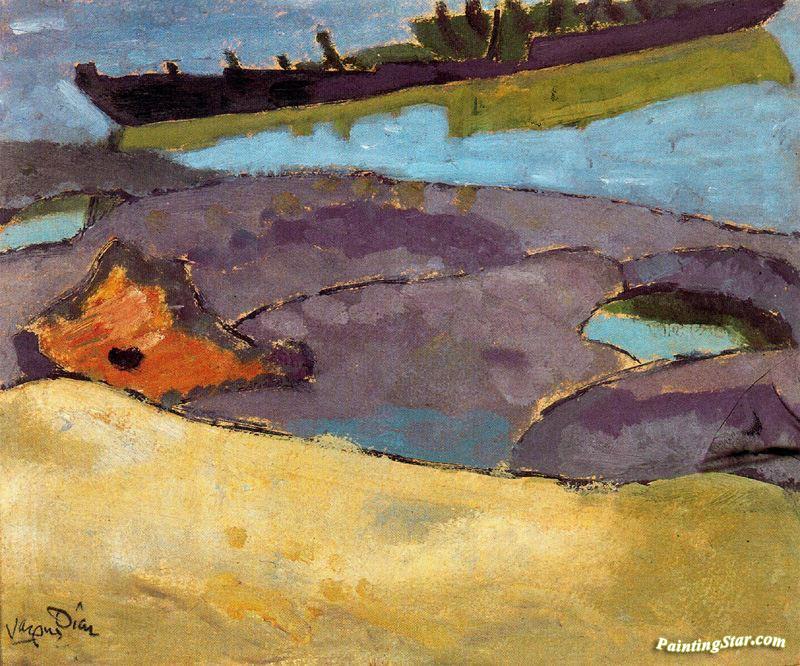 Boats In The Bidasoa, Art Painting by Daniel Vazquez Diaz
