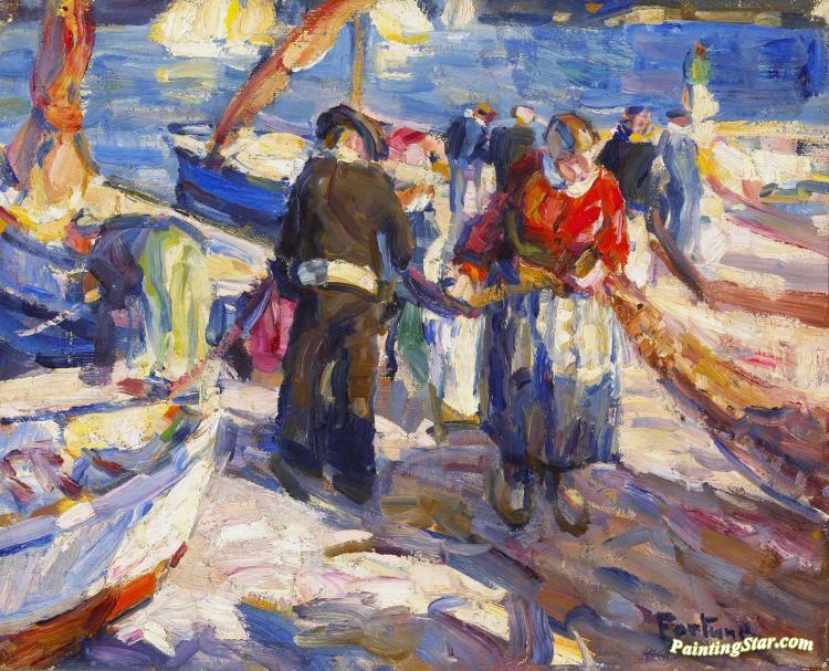 Mending Nets, Art Painting by E. Charlton Fortune