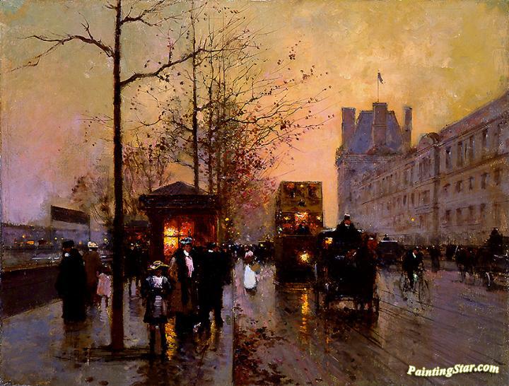 Quai du Louvre, Art Painting by Edouard Léon Cortes