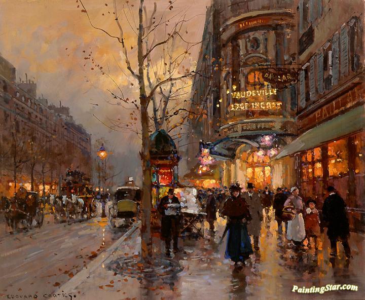 Théâtre du Vaudeville, Art Painting by Edouard Léon Cortes