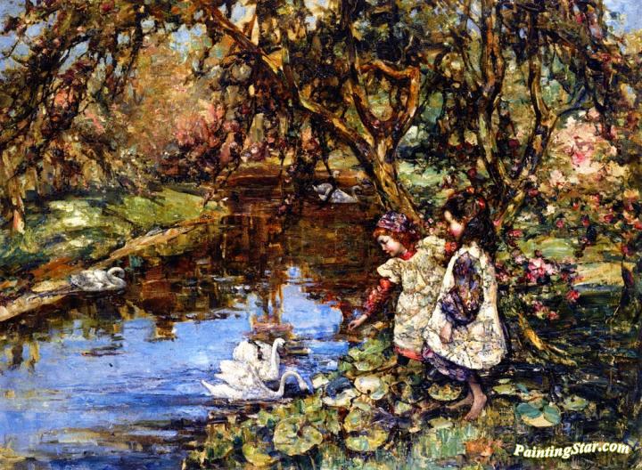 Feeding The Swans, Art Painting by Edward Atkinson Hornel