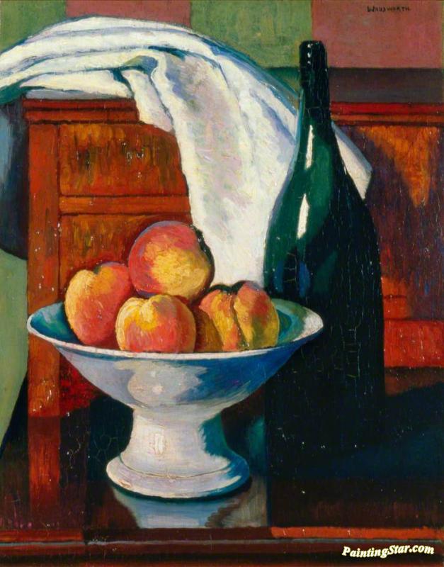 Still Life With Fruit And A Bottle, Art Painting by Edward Wadsworth