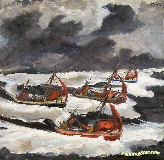 Fishing Boats in Rough Sea, Art Painting by Einar Halvdan Berger