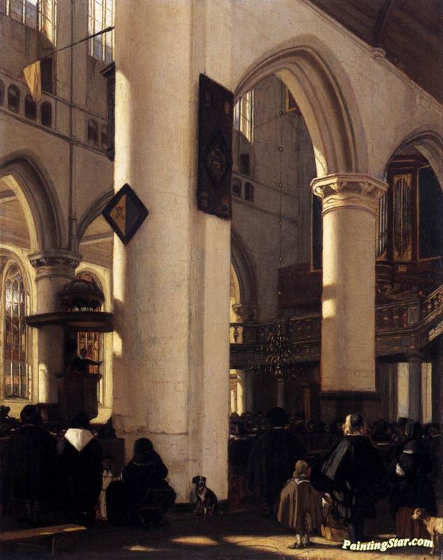 Interior Of A Protestant Gothic Church, Art Painting by Emanuel de Witte