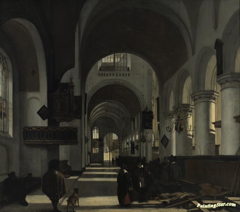 Interior Of A Protestant Gothic Church, Art Painting by Emanuel de Witte