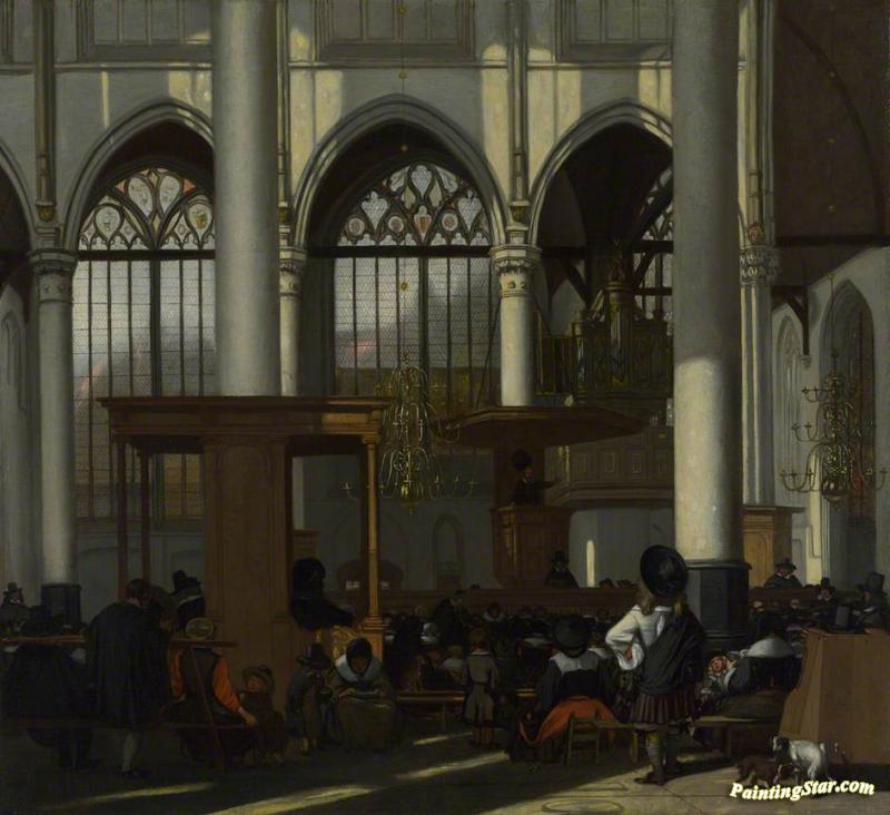 The Interior Of The Oude Kerk, Amsterdam, During A Sermon, Art Painting by Emanuel de Witte