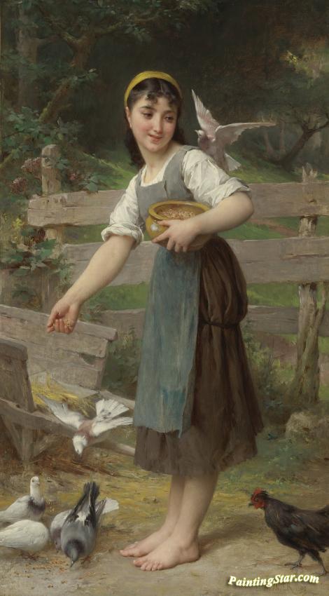 Feeding The Doves, Art Painting by Emile Munier