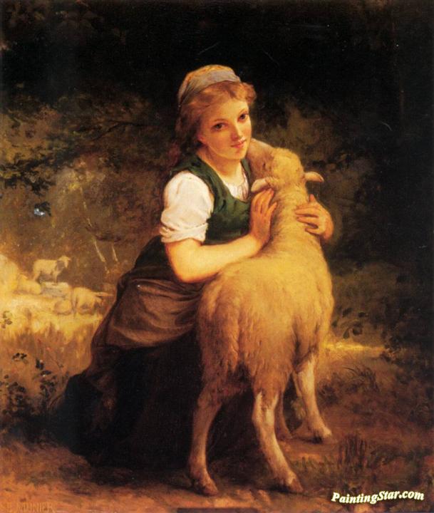 Young Girl With Lamb, Art Painting by Emile Munier