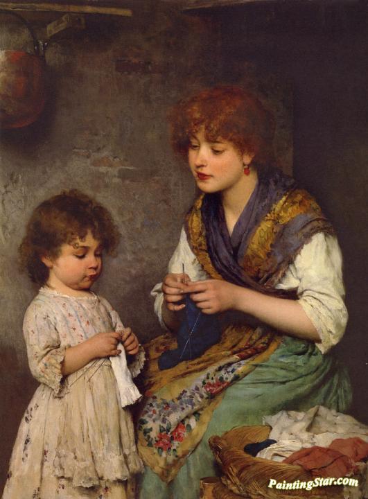 The Knitting Lesson, Art Painting by Eugen Von Blaas