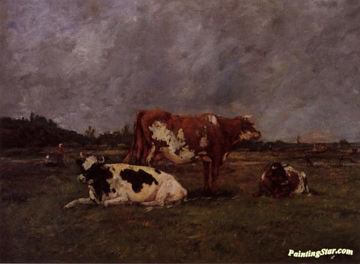 Cows in Pasture, Art Painting by Eugène-Louis Boudin